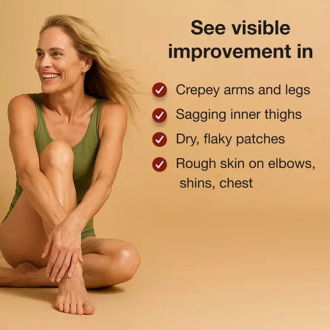 Bestselling Ayurvedic body oil for saggy, crepey skin on arms and legs with three unique kinds of wood, Grapefruit, Tea Leaf Extract, & Neroli!
