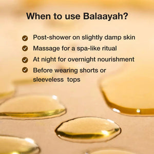 Balaayah Black Gram Body Booster is a Rich Body Massage Oil for Robust, Velvety Skin. Balances Vata dosha.