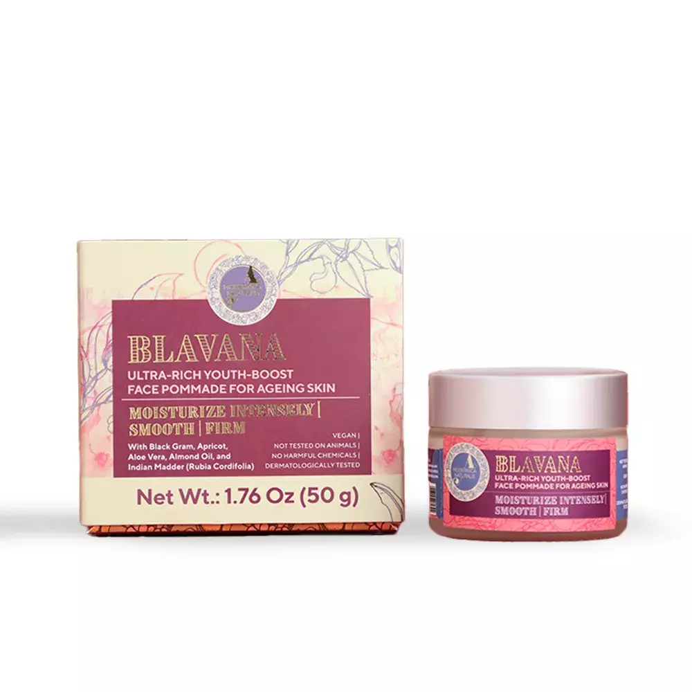 Blavana Ultra-Rich Youth-Boost Face Pommade is perfect for dry, mature skin with prominent signs of aging. The ingredients used in this formulation are highly effective at addressing aging skin concerns, such as dryness, wrinkles, fine lines, dullness, as well as loose, droopy skin.
