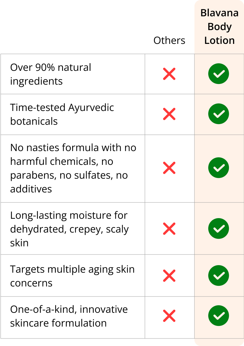 Porque otras lociones corporales genéricas no tienen ni pueden hacer lo que Blavana Body Lotion puede hacer por la piel madura y envejecida.