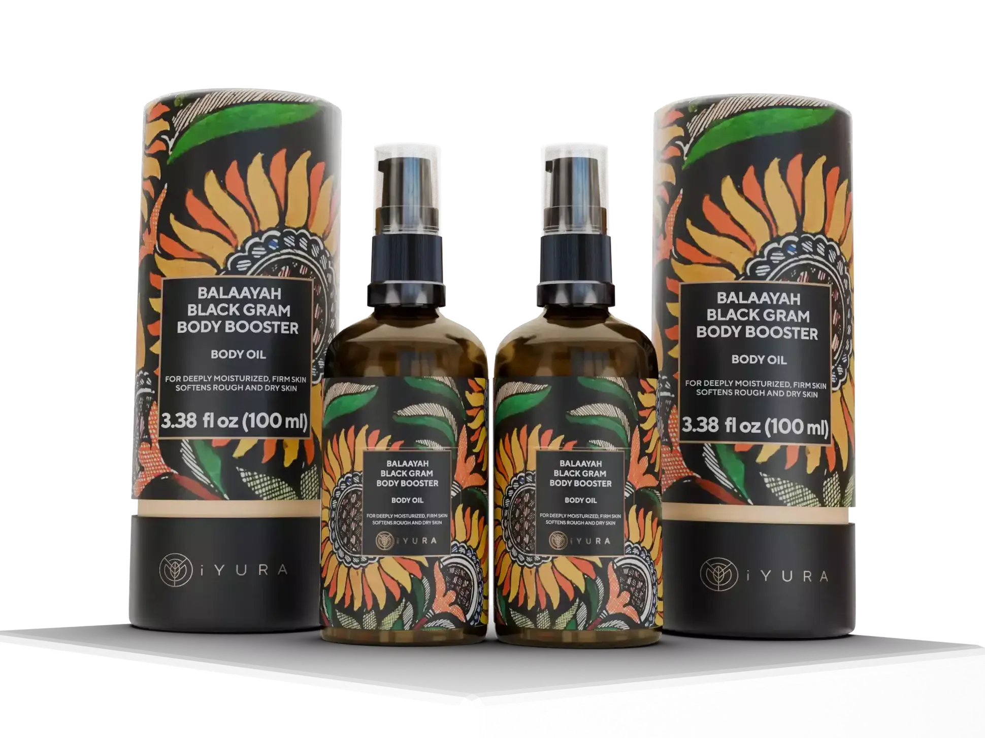 Our Black Gram infused Ayurveda-inspired body oil that firms the look of saggy skin on the arms & legs.