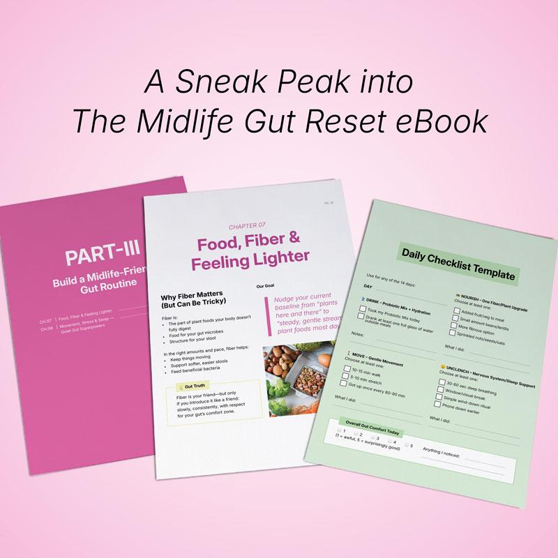 When you order Probiotic Mix today, you'll instantly receive our comprehensive Midlife Gut Reset Ebook (Worth $19.99) — absolutely free. This isn't just another PDF. It's your personal roadmap to understanding exactly what's happening in your body and how to feel comfortable again.