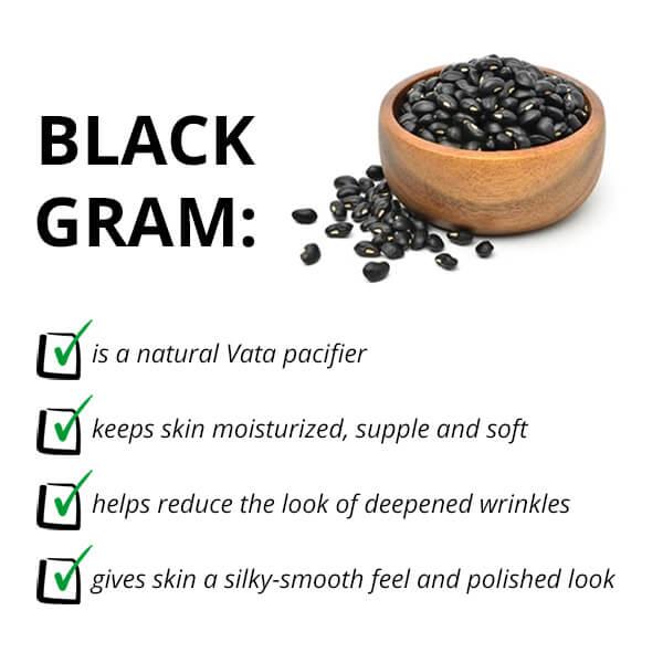 Revered as a natural Vata pacifier in Ayurveda, Black Gram imparts smoothness and moisture to the skin and keeps it feeling plump and soft. INTERESTINGLY, Black Gram is a potent ingredient that helps overcome the appearance of aggressive signs of aging. But that’s not all. It doesn’t just fade away the look of aging but also upholds the health of your skin!