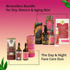 This bundle provides you a proper day and night skincare regimen with daytime products for instant moisturization and skin rejuvenation and night-time products that work their magic in the night uniterruptedly and make you skin appear healthy and golden!