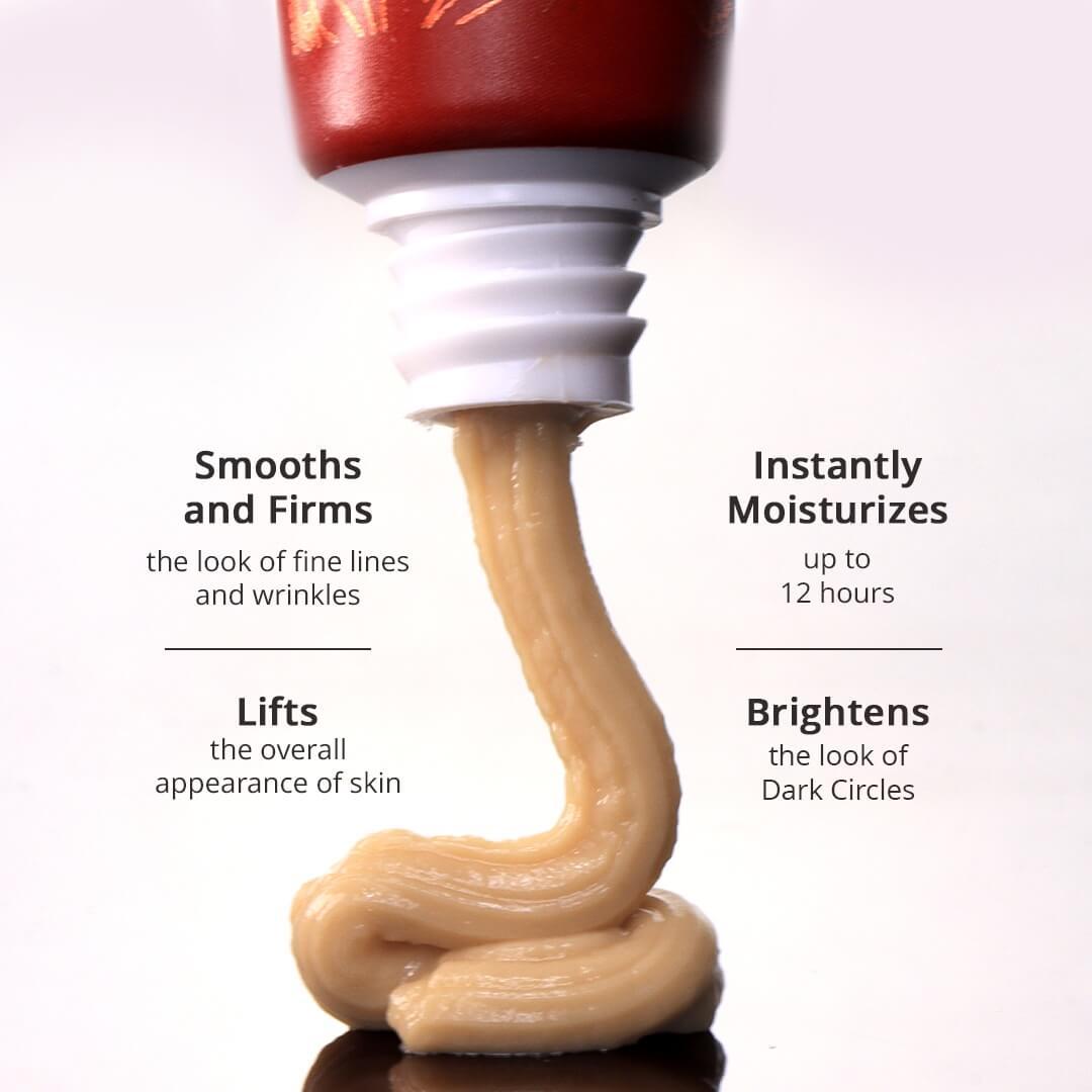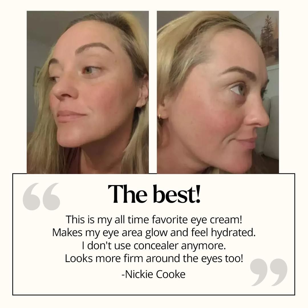 The skin drinks it up! With regular use, your under-eyes and eyelids will look BRIGHTER & FIRMER
