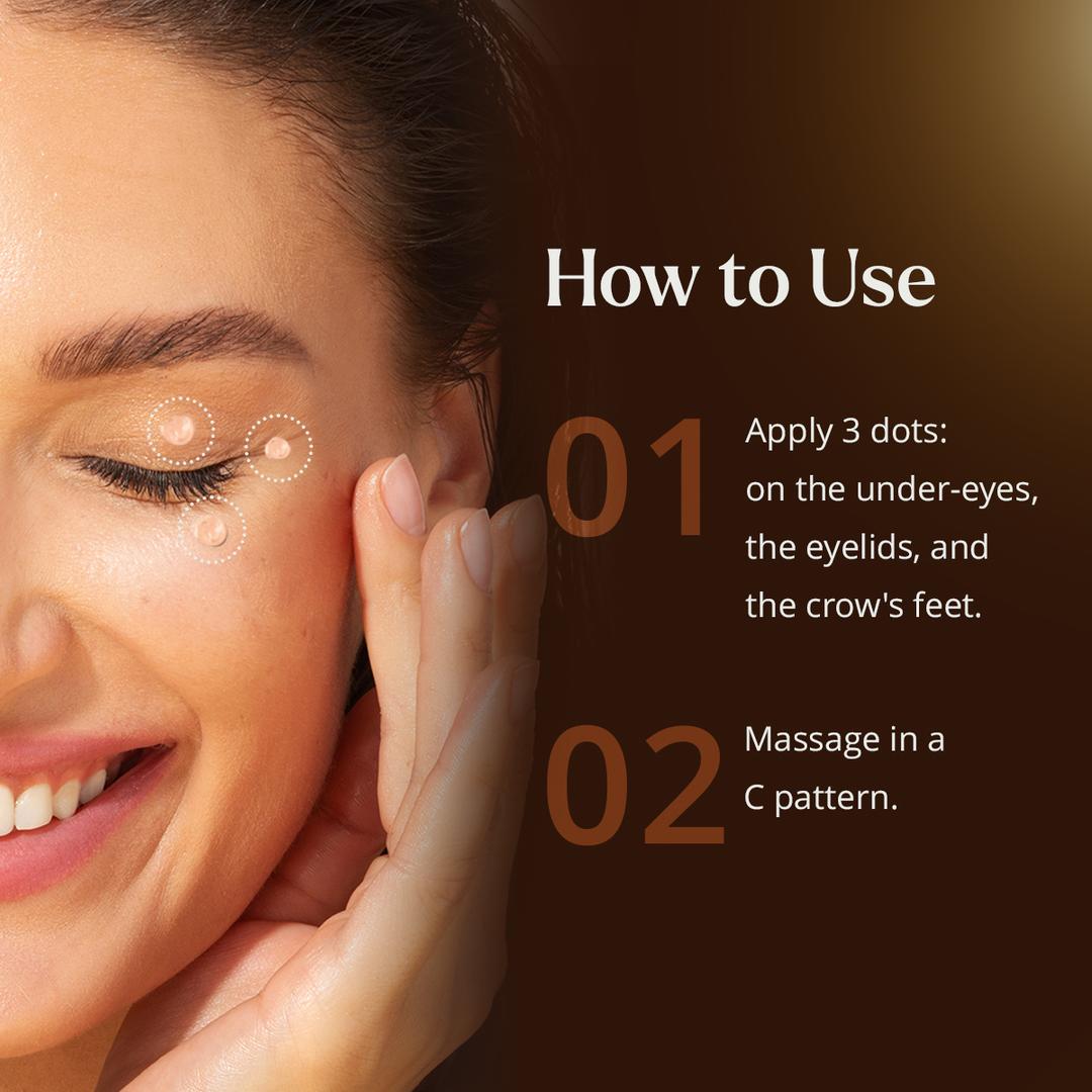 Use it twice every day for best results. You'll love how a little of it goes a long, long way. Just apply 3 dots all over your Eye Contour Area after you're done with rest of your skincare. Layer with sunscreen during the day.