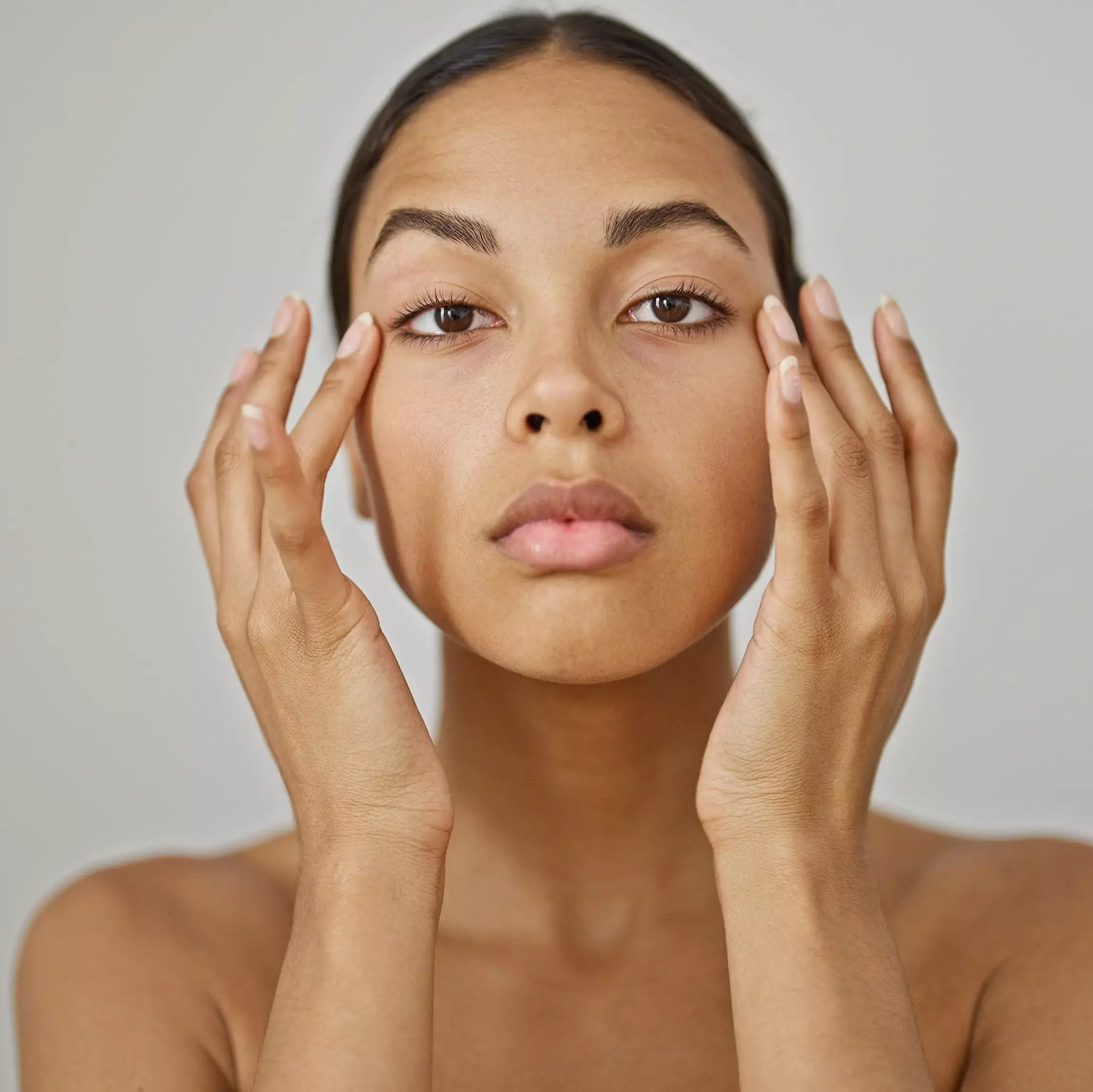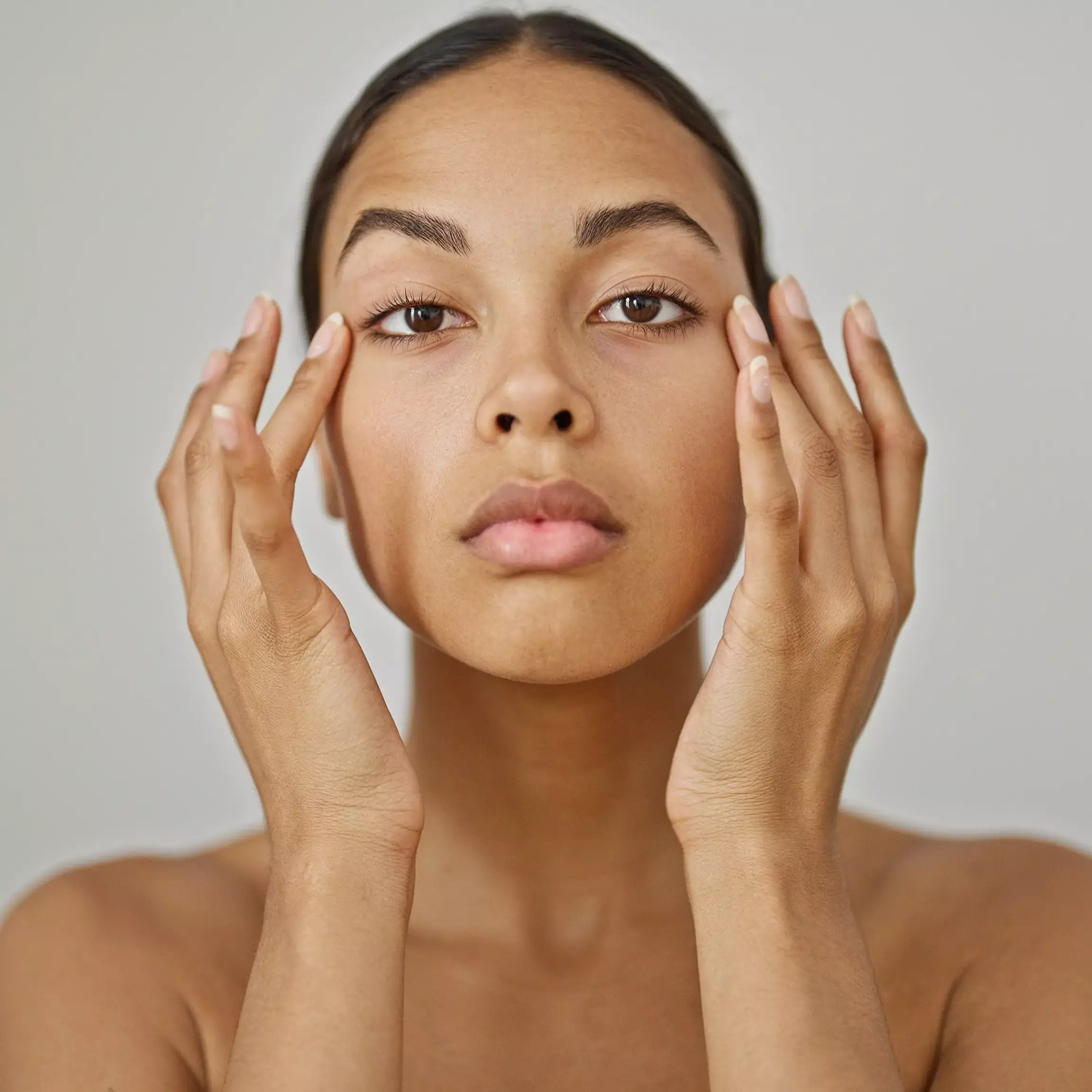 Massage in an upward & outward direction all around the eye area for a Firmed, Lifted, Brightened look